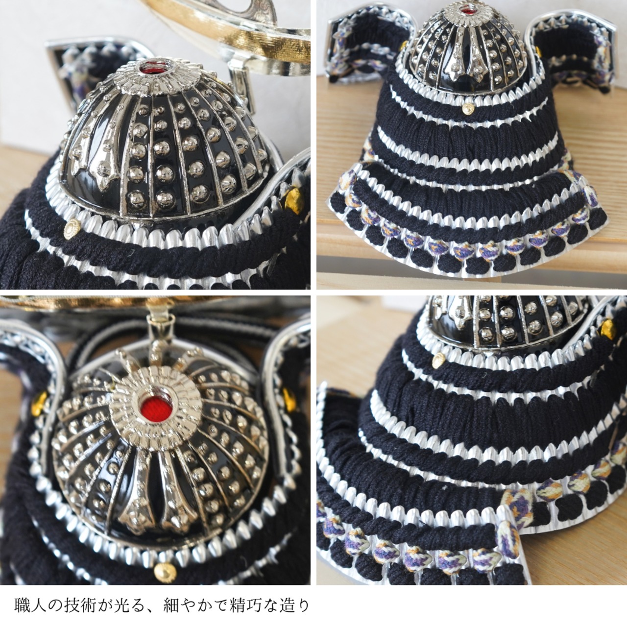 五月人形ならではの黒と銀がメインの兜